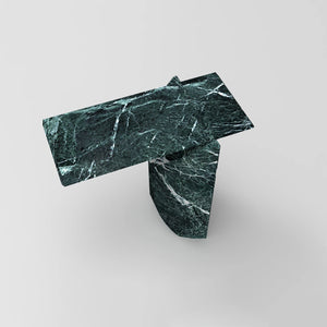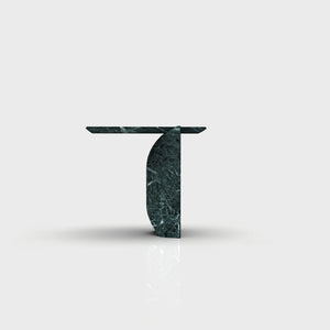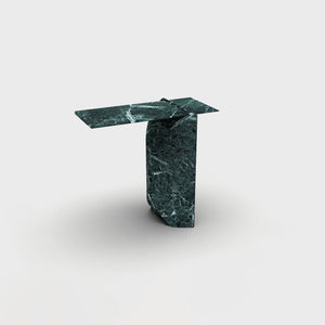 The elegantly structured leg is also composed of Spider Green Marble, reinforcing the table’s monolithic allure. The combination of its organic veining and architectural silhouette ensures that the Crest Side Table is as much a piece of art as it is a functional furnishing.