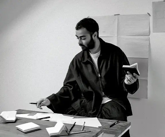In 2024, armaan founded anda_ba, a multidisciplinary design studio that embodies the search for contemporary indian sensibility, an experiment across different scales of design. the studio is currently working on a fifty-piece object and furniture collection and an in-situ cast concrete house near chandigarh. the studio is inspired by the natural patinas found across indian heritage, whilst retaining london’s contemporary culture. the collaboration collection between essentia and anda_ba embraces gestural carvings on locally sourced stones _ indian basalt and sandstone. the minimal silhouettes formed by this collaboration reimagine traditional objects in modern indian society. they are suspended in a junction of heritage art and a minimal object. the dialogue between two countries, materials, and eras is what inspires this collection.