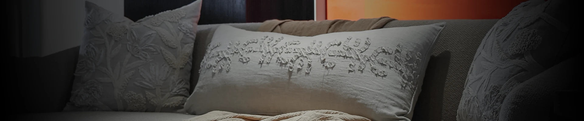 essentia homePositive & Negative Cushion – Beige Threadwork on Linen