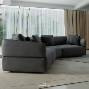The Alda Sofa is defined by its distinctive shape, where form becomes the central design feature. Its silhouette departs from conventional lines, creating a presence that feels expressive yet well-balanced. The curves and transitions between elements are carefully considered, giving the sofa a strong visual identity from every angle.