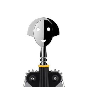 Crafted in sleek black thermoplastic resin with chrome-plated zamak detailing, it captures the essence of postmodern whimsy with a refined finish. The combination of tactile material and clever form gives this corkscrew both personality and ergonomic precision. Anna’s head serves as the turning handle, while her outstretched arms become functional levers—making every bottle an experience to open.