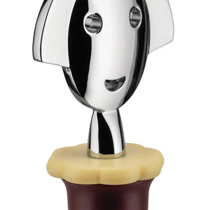 Crafted from black thermoplastic resin with a polished chrome-plated zamak head, the piece is equal parts functional and figurative. The whimsical face of Anna becomes the tactile top of the stopper, giving a personal gesture to sealing your favorite wine or beverage. Its snug fit ensures freshness, while the durable construction blends art with purpose.