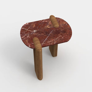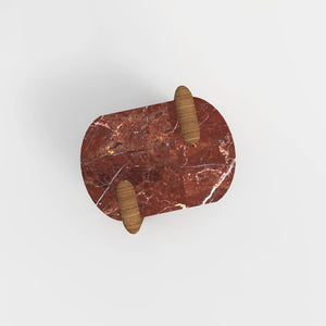 The tabletop is meticulously crafted from Red Jasper Stone, polished in a matte leather finish, enhancing its deep, rich hues and natural veining. This luxurious surface is complemented by softly rounded edges, adding a sense of warmth and tactile sophistication.