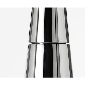 The Large Mill grinder features expressive handles, a sleek stainless steel conical design, and a mirrored finish for easy cleaning. Built for durability with a robust mechanism, it offers up to 25 years of use and has interchangeable mechanisms.