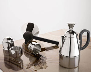 This particular metallic surface finish and conical shape are great design features, but the intention of just brewing coffee seamlessly through the setup becomes part of your life routine. Whether brewing that early Monday morning cup of coffee or for a special guest occasion, the Brew Stove Top offers a statement in both its design and utility.