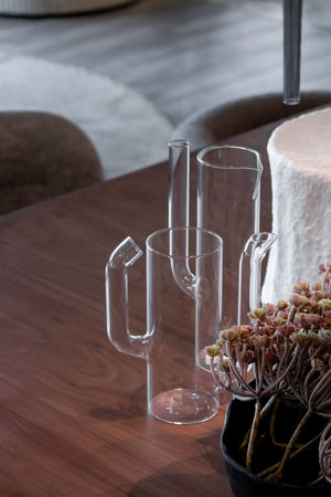 The CACTUS Jug 2 possesses a sleek and modern design influenced by that of an actual cactus. Designed with two wide spouts and a uniquely molded handle, the jug marries functionality with an artistic style, making it a centerpiece or statement piece in any table setting or kitchen décor. Its modern design and practical features ensure that it beautifully fits into your home ambiance, providing a servingware piece that adds creativity to your drinkware collection.