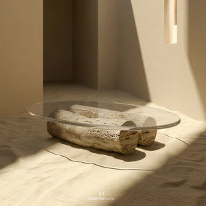 Rounded structural elements support the Chaplin Coffee Table by Esssentia Home, forming a rhythmic base beneath its composed tabletop. The contrast between curved supports and linear surface introduces visual balance without excess.