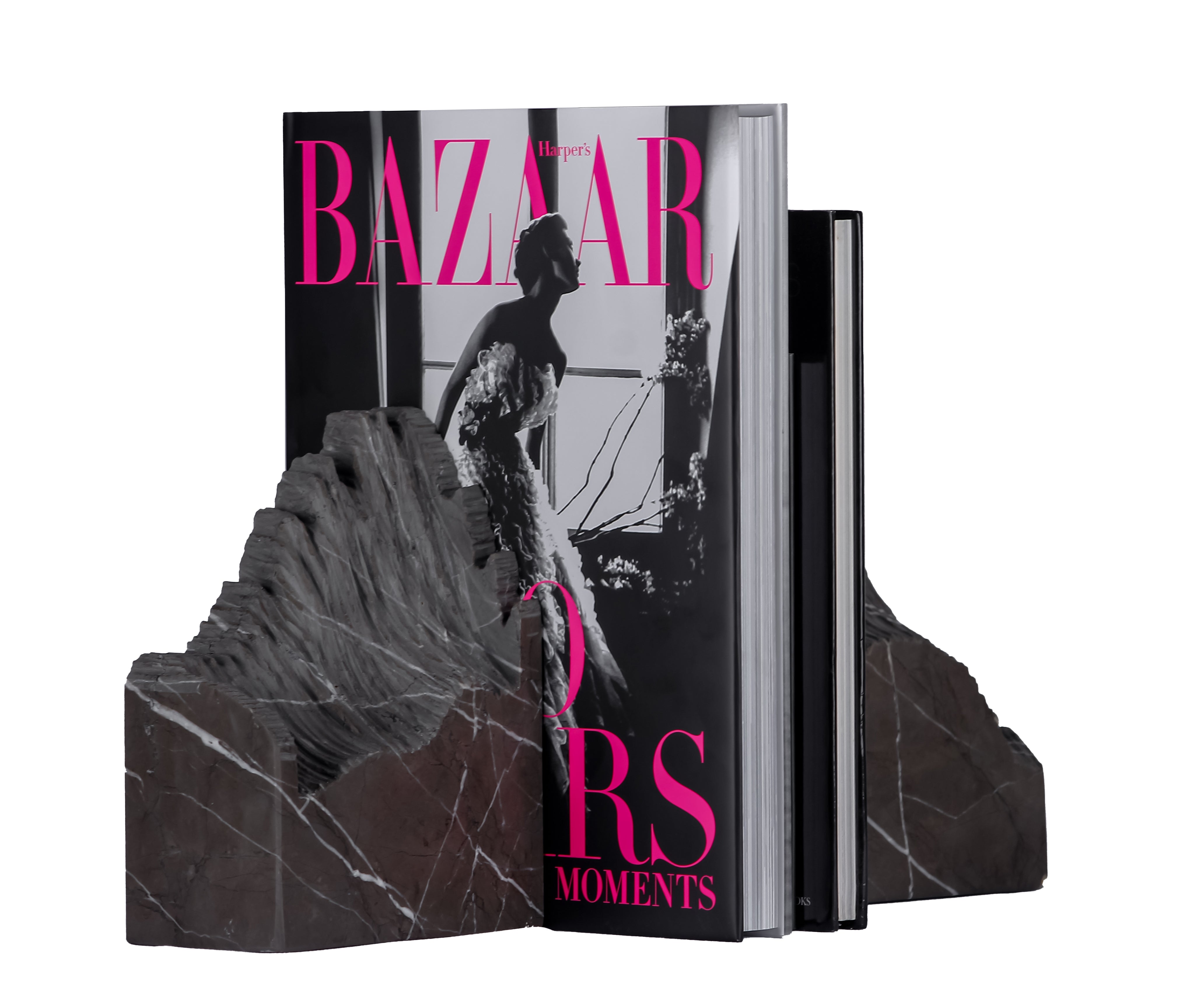 Impart a sense of daring earthy sophistication to your shelves with the Layered Stone Bookends. The bookends were inspired by rock strata and geological formations, and their textured surface similar to the raw natural beauty of layered stone provides a sculptural aspect that satisfies both function and aesthetic appeal.