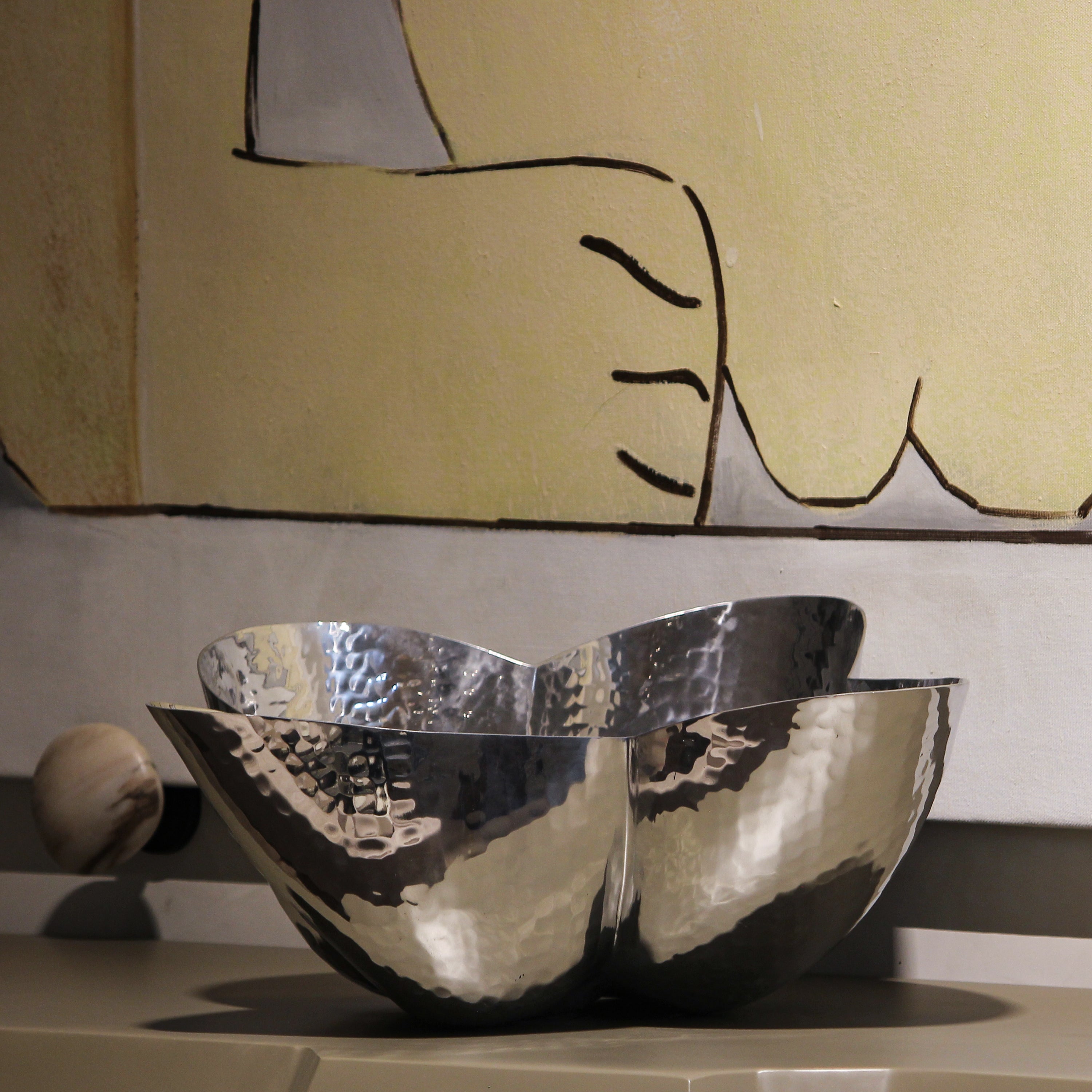 The Tom Dixon Cloud Bowl-Large is an impactful fusion of art and function. Hand-hammered into an abstract form and finished in a reflective manner, this statement bowl offers a dramatic accent to any interior. Movement through the bowl and the play of light create dimension for any decor with such an unusual design.