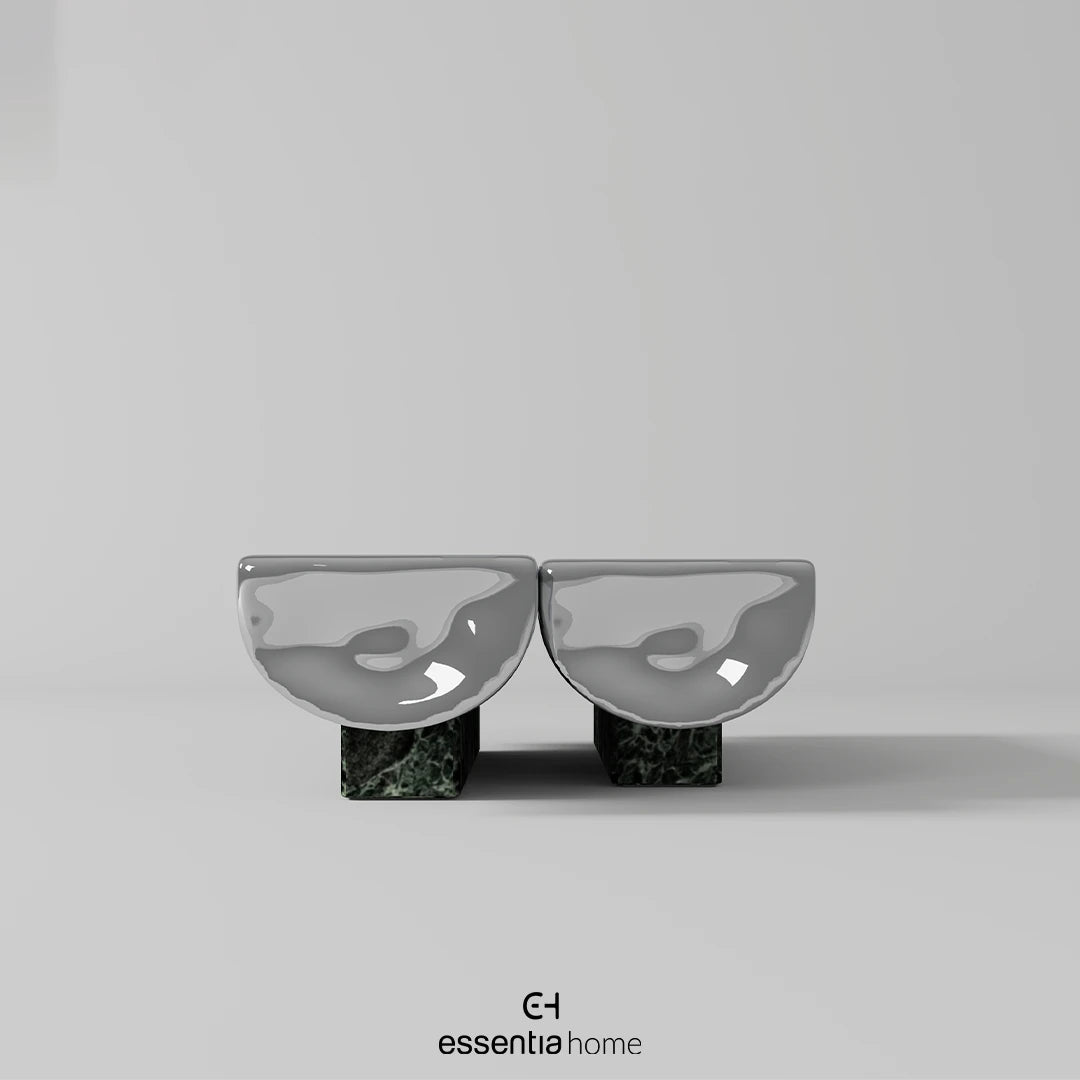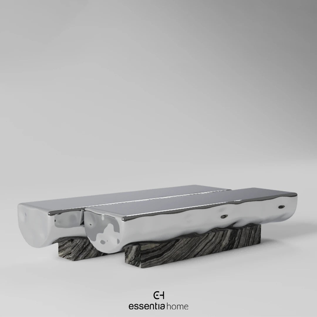 Designed to blur the lines between structure and sculpture, the Coffee Table Leg from Essentia Home redefines the foundation of modern luxury furniture. This set of two base units (each L: 3'-0" D: 0'-8" H: 0'-6") pairs raw natural stone with a fluid mirror-polished metal top, creating a striking balance of earthy texture and futuristic sheen.