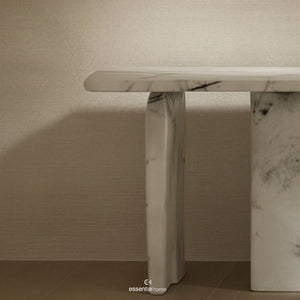 Structured simplicity defines the Cova Console by Esssentia Home, where clean lines and balanced proportions create a calm architectural statement. The streamlined surface provides a practical platform for display and daily essentials, while the solid supports establish visual stability.