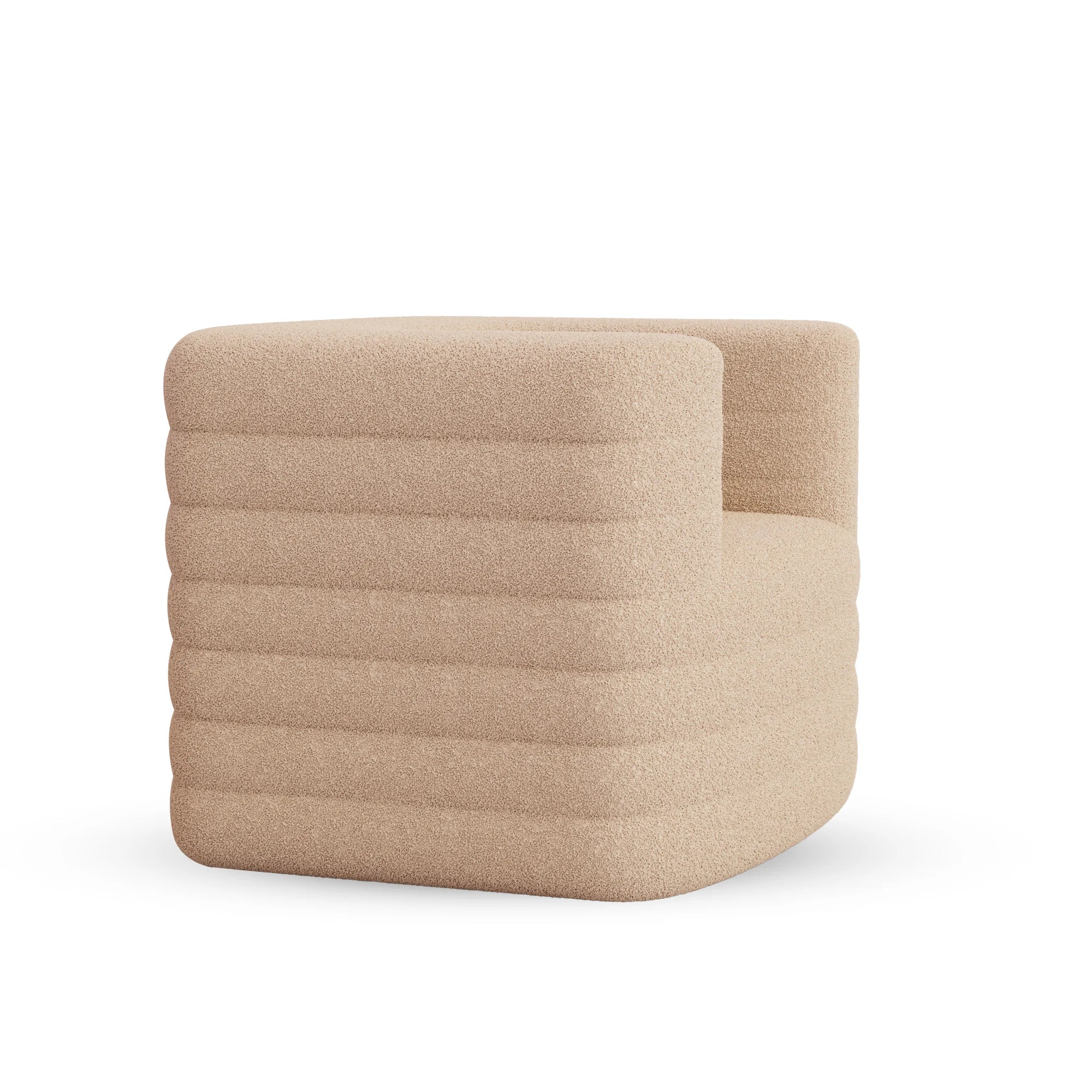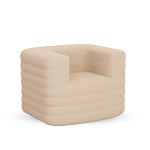 The CREPE Accent Chair – Medium by Essentia Home turns into an epitome of boldness and formality that plants itself right in any interior. Reflecting balanced layering and soft geometry between plush comfort and architectural composition, it has strong digital credentials to be found in luxury living spaces, modern reading corners, or design-laden bedrooms.