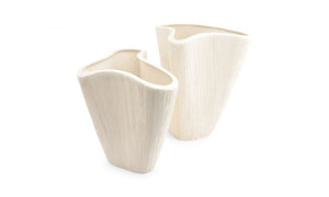 Wide tapering into a graceful asymmetrical rise is what divides a form it conceives an illusion of dynamism and yet produces a sense of balance. A rich-textured and visually layered effect is created through a natural stoneware finish one that generates the raw beauty of handmade materials. It textures nicely to allow light to graze its curves softly, revealing an artisanal soul behind the form. The vase, whether gracing a dining table, console, or shelf, introduces sculptural elegance without superfluity.