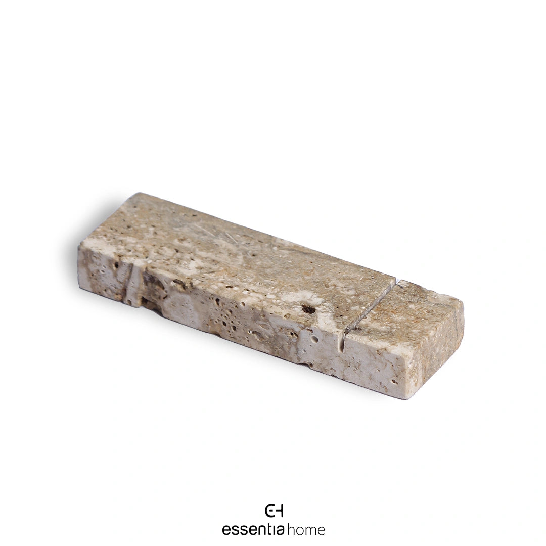 Crafted in Silver Travertine stone, the Cutlery Rest is a minimal yet functional accessory designed to elevate dining rituals. Each piece is carefully hand-finished with clean lines and subtle grooves that securely hold spoons, forks, and knives in place—keeping cutlery elevated and your table spotless.