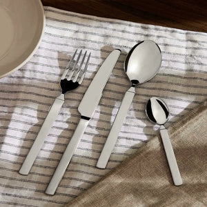 Designed by Achille Castiglioni for Alessi, the 4180S24 Dry Cutlery Set is an iconic blend of modern simplicity and refined ergonomics. Crafted from 18/10 stainless steel, each piece features a mirror-polished surface with a matte-finished handle for subtle contrast and tactile elegance. This 24-piece set includes six table spoons, six table forks, six table knives, and six coffee spoons—perfectly balancing everyday functionality with sculptural beauty.