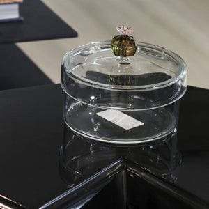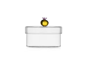 The DESERT PLANTS Box Cactus Amber adds a touch of nature to your home with an adorable cactus knob in amber and lilac shades. This decorative glass storage jar is designed to add a bit of whimsy to the perfectly functional storage of small items. It is likely to be just as charming resting on a console or side table as a decorative piece or component of a vignette.