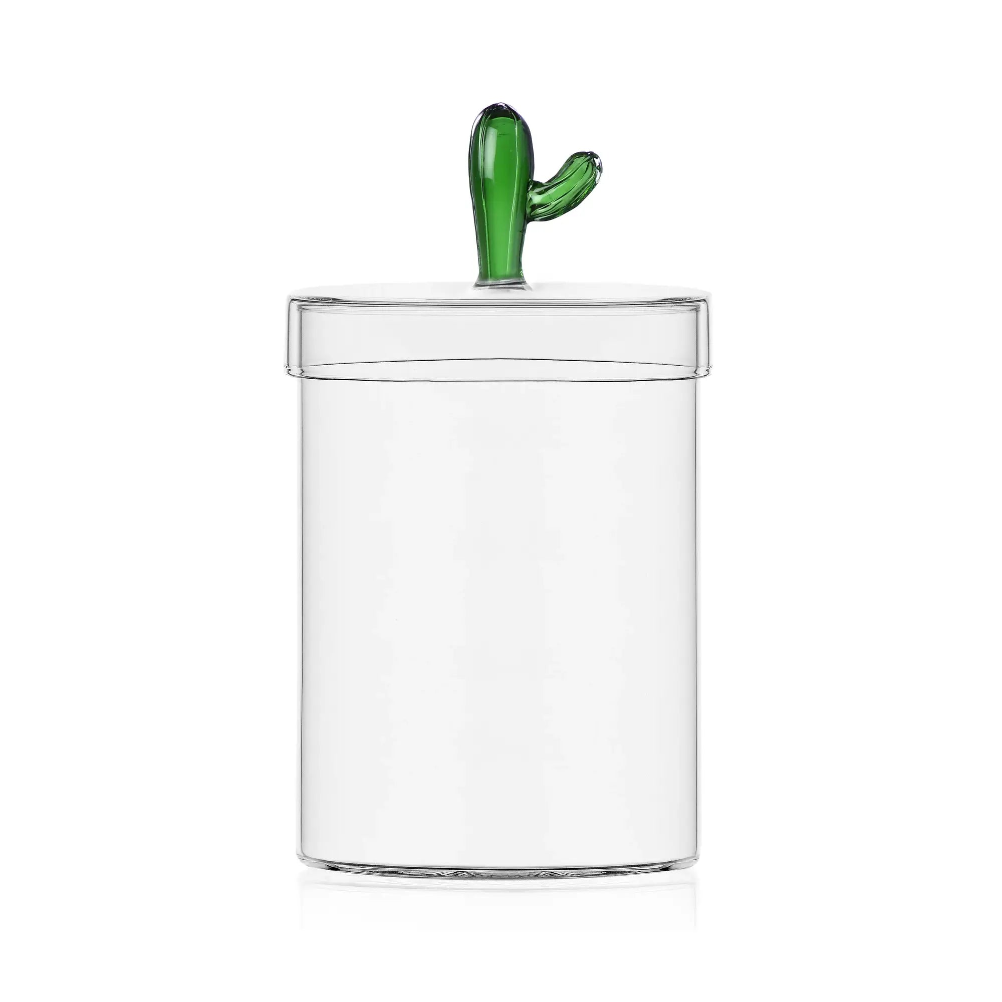 From the Desert Plants Collection, the Cactus Green Box brings together artistry and nature in a playful yet sophisticated design. Hand-made and flame-worked from fine glass, this piece features a clear base crowned with a sculptural green cactus lid, creating a whimsical accent that doubles as a functional storage box.