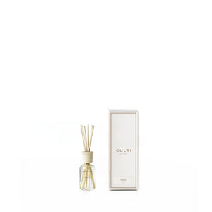 CULTI MILANO Stile Classic comes in a beautifully serigraphed glass bottle with a natural maple wood cap, which gives it a clean, understated elegance. Designed specifically for a smaller space, this 100ml edition helps to add softness and refinements in the surroundings without making a visual statement.