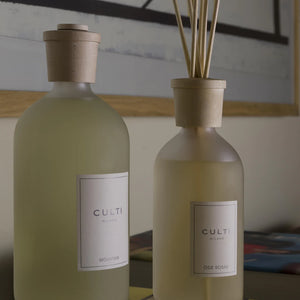 Paying homage to the stillness of the soul, the CULTI MILANO STILE diffuser symbolizes a quiet moment of ritual and choice of fragrance. This frosted glass bottle with an ivory label and natural maple wood cap is a tribute to the integrity and timelessness of the style of the STILE collection.