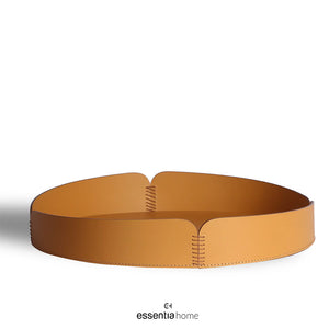 Circular in form and beautifully hand-stitched, its nude tan hue adds warmth while maintaining a modern, neutral character. The raised edges subtly hold curated objects in place, offering visual clarity without crowding the composition. It works beautifully on coffee tables, dressers, kitchen islands, or even workstations—bringing together form and function in the signature language of Essentia Modern Living.