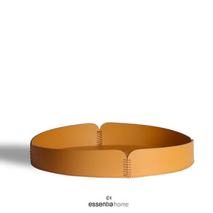 Its warm nude tan tone meets a circular silhouette with seamless construction and detailed stitching. The raised edge creates soft containment without visual weight, ideal for open counters, vanities, or shelves. With clean design and artisanal finish, it reflects the styling finesse of Essentia Interiors Delhi NCR.