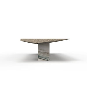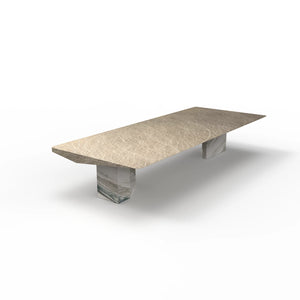 A seamless blend of architectural precision and raw material elegance, the Ferro Xabia Dining Table is a statement of refined craftsmanship. Designed for those who appreciate sculptural presence in their interiors, this dining table pairs an industrial metal top with naturally veined stone legs, creating a striking contrast of textures.