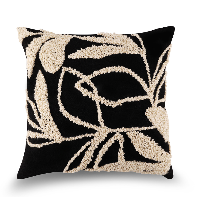 The Nightshade Flora Cushion Cover features a clean black ground with floral patterns worked intricately in beige. The black and beige combination, together with the work on floral, brings a classic piece of elegance suitable to any home décor present. This fine linen construction not only imbues your plan with charm but also provides luxury texture to the touch. The elegant yet universal appearance makes it perfectly comfortable in contemporary or traditional interiors.