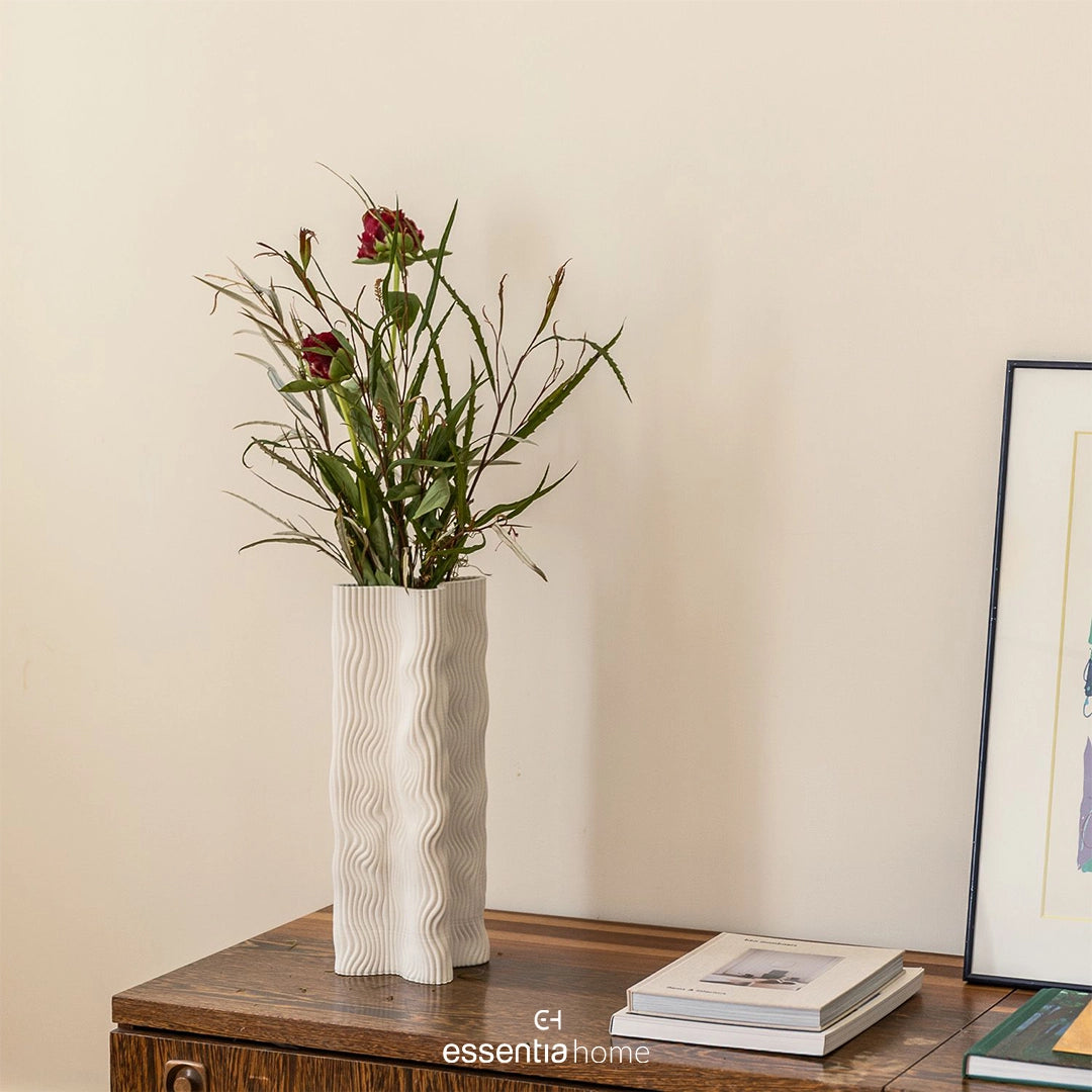 Enhance your space with the Vea collection’s 17.5 × 17.5 × 33 cm fluid white vase—designed to add instant character without trying too hard. Its sculptural silhouette and subtly textured finish catch the light beautifully, giving your console, dining table, or shelf a clean modern lift. Style it with fresh blooms, dried stems, or let it stand on its own as a statement accent. The crisp white tone blends effortlessly with warm woods, stone, glass, and neutral palettes, making it an easy upgrade for everyday styling and seasonal refreshes