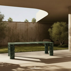 The Ganga Rectangular Table draws inspiration from the quiet movement of a flowing river, reflected in the continuity of its form. Its surface extends with a sense of ease, while the edges and transitions are shaped to feel soft and uninterrupted, echoing a natural rhythm.