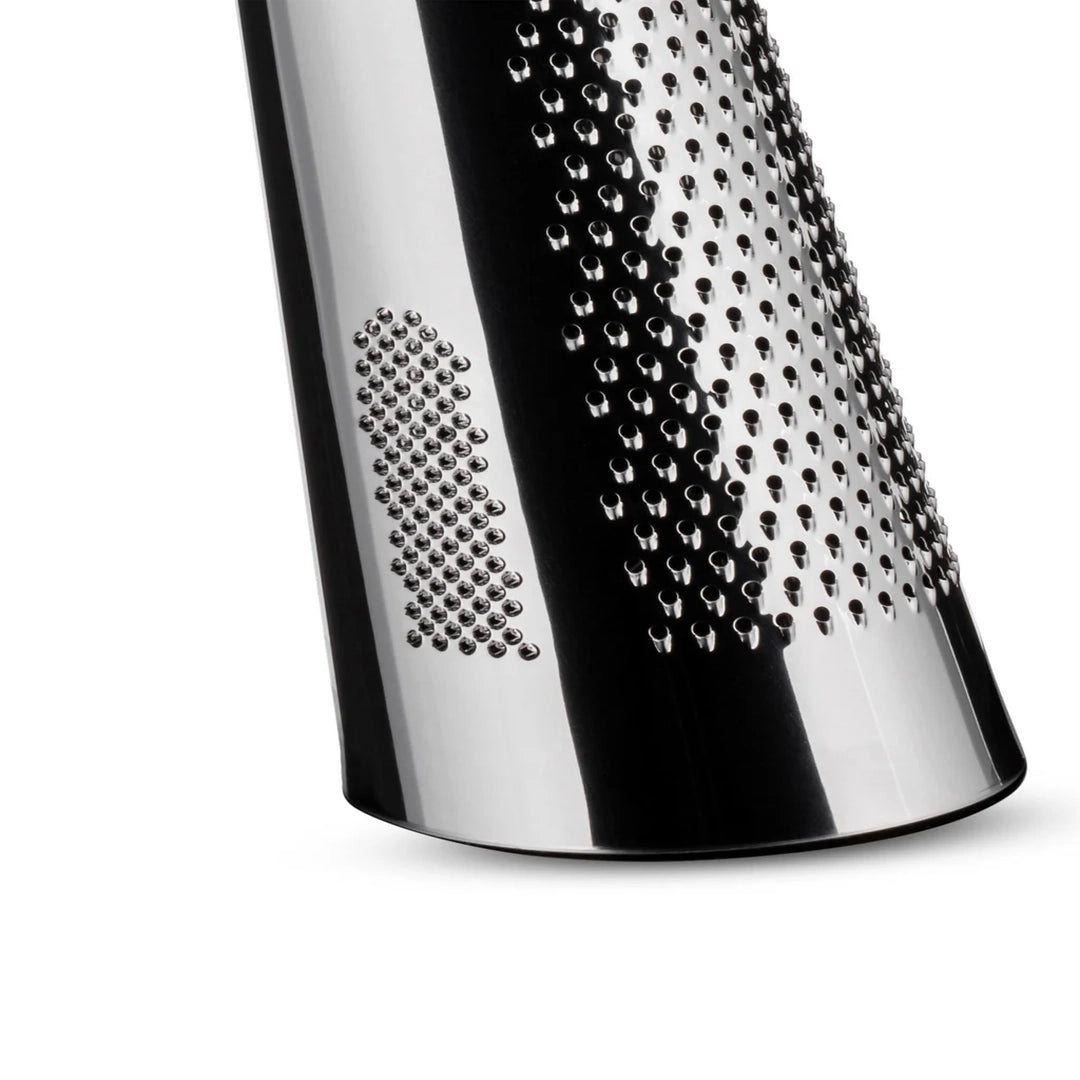 Designed by Richard Sapper for Alessi, the RS08 Todo giant grater is a sculptural rethinking of a kitchen essential. Crafted with a striking combination of stainless steel and wood, this oversized grater is designed to shred generous quantities of cheese, nutmeg, or chocolate with minimal effort. Its elongated, conical form adds a dramatic silhouette to any kitchen or dining setup, making it as visually impactful as it is functional.