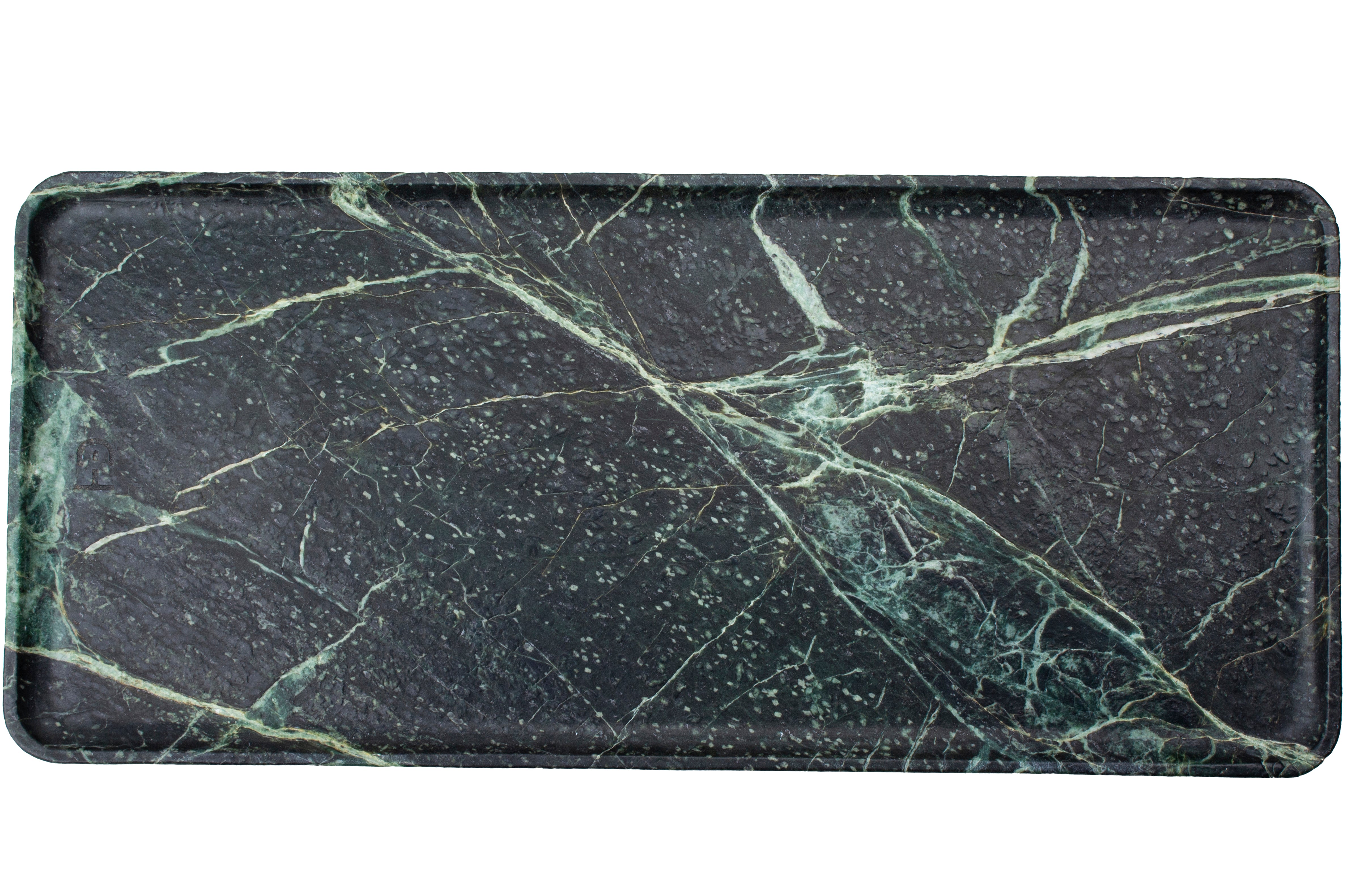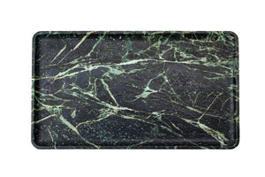 It draws bold contrast and organic patterns to itself to easily shade into any environment, whether serving refreshments, within an oat sink of essentials, or as just another decorative accessory amongst carefully arranged interiors. The definition in the side profile also lends substance to the tray, deeming it for use in either a minimalist or a richly layered space.