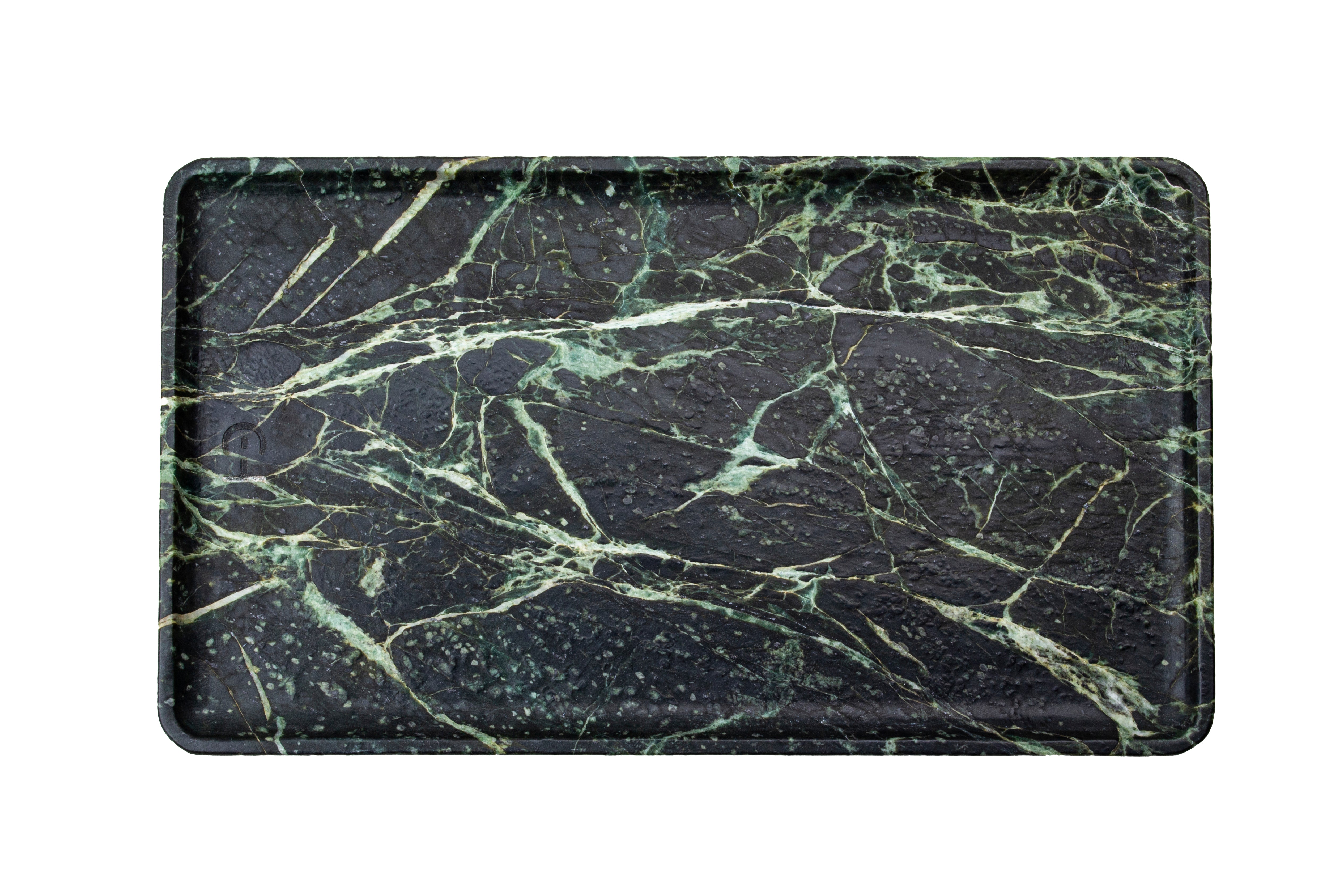 Make a forceful statement with the Green Spider Stone Tray-a work of nature torn between mischief and civilized refinement. Both pure and extravagant in the dramatic natural beauty of vivid green veining against deep black stone, this tray speaks luxury, depth, and sophistication.