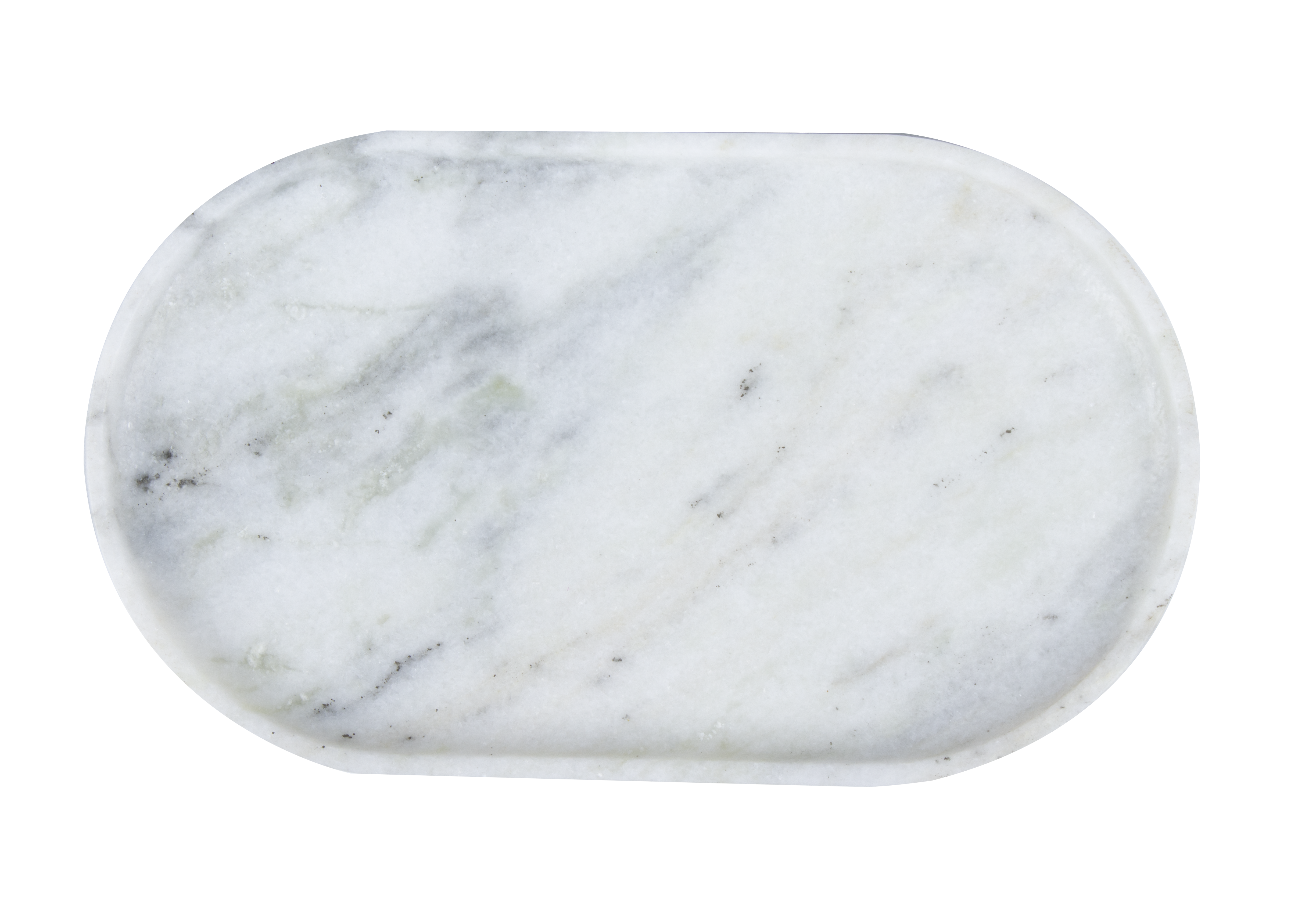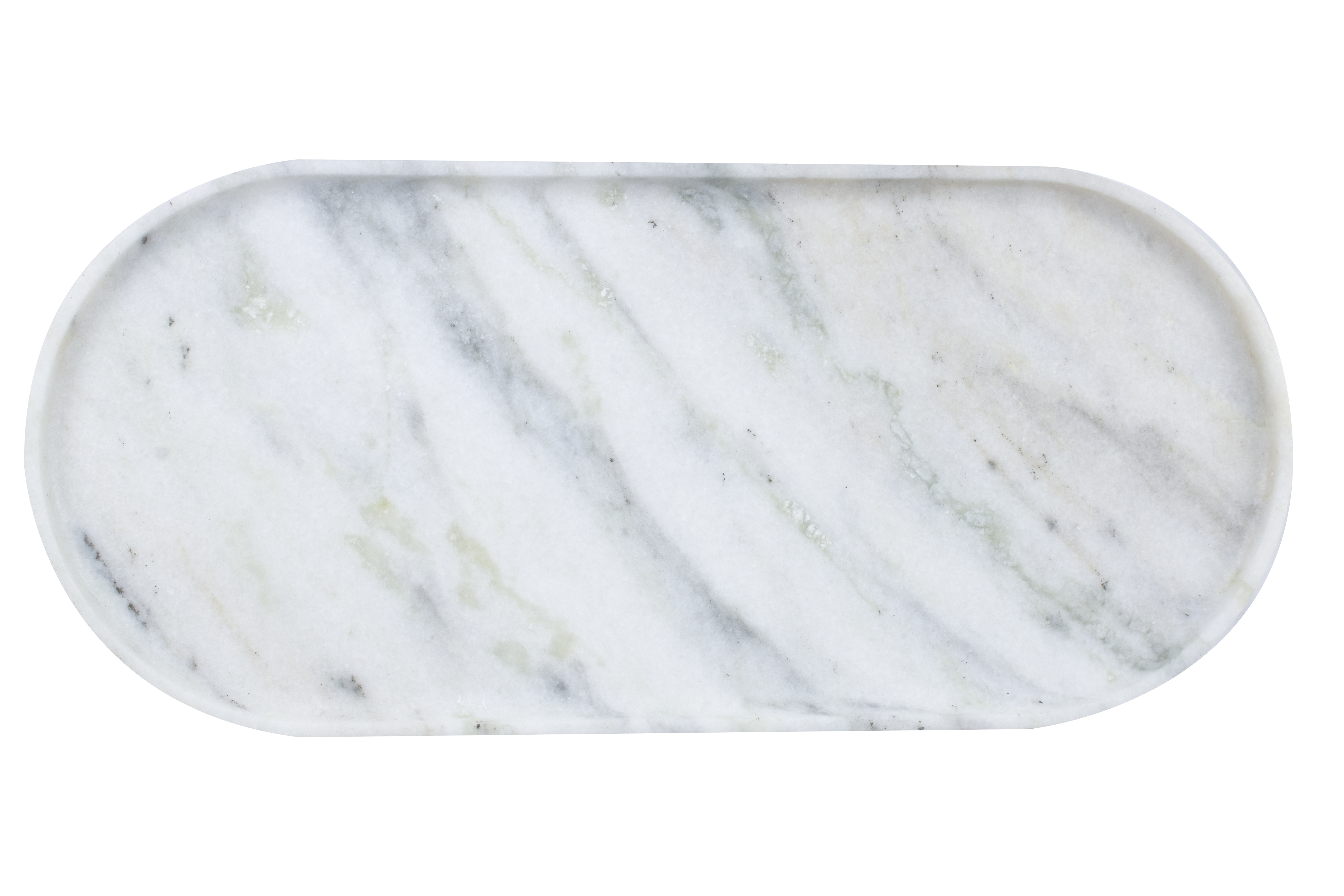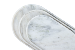 The Indian White Carrara Stone Oval Tray captures the spirit of classical elegance having a frame constructed from refined white marble veined delicately with soft strokes of gray that symbolizes the beauty of the classic Carrara stone. The smooth surface polishes the stone's natural flow, here, giving the depth and subtle texture to any interior.