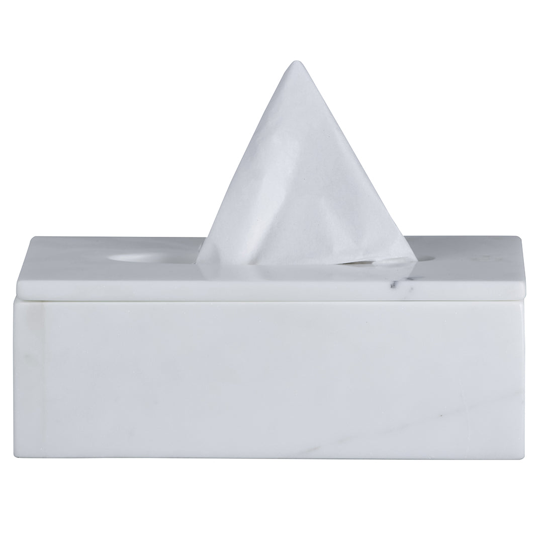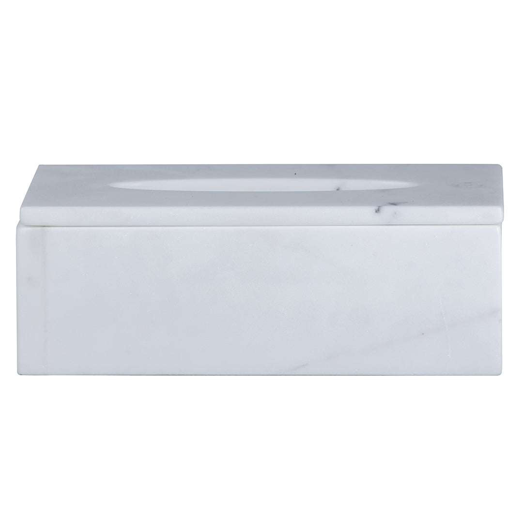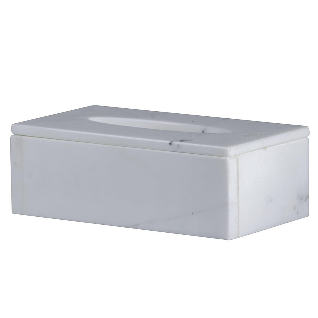 The Wood Tissue Box with Carrara Stone Finish is a nice sophisticated design elevating an equally functional object. Finely crafted in superior-quality Indian white marble, it is adorned with soft gray veining flowing gracefully through an elegant, minimalistic silhouette. Thus, it becomes a timeless accessory that gently enhances your habitation while glorifying the beauty of a somewhat raw and lasting material.