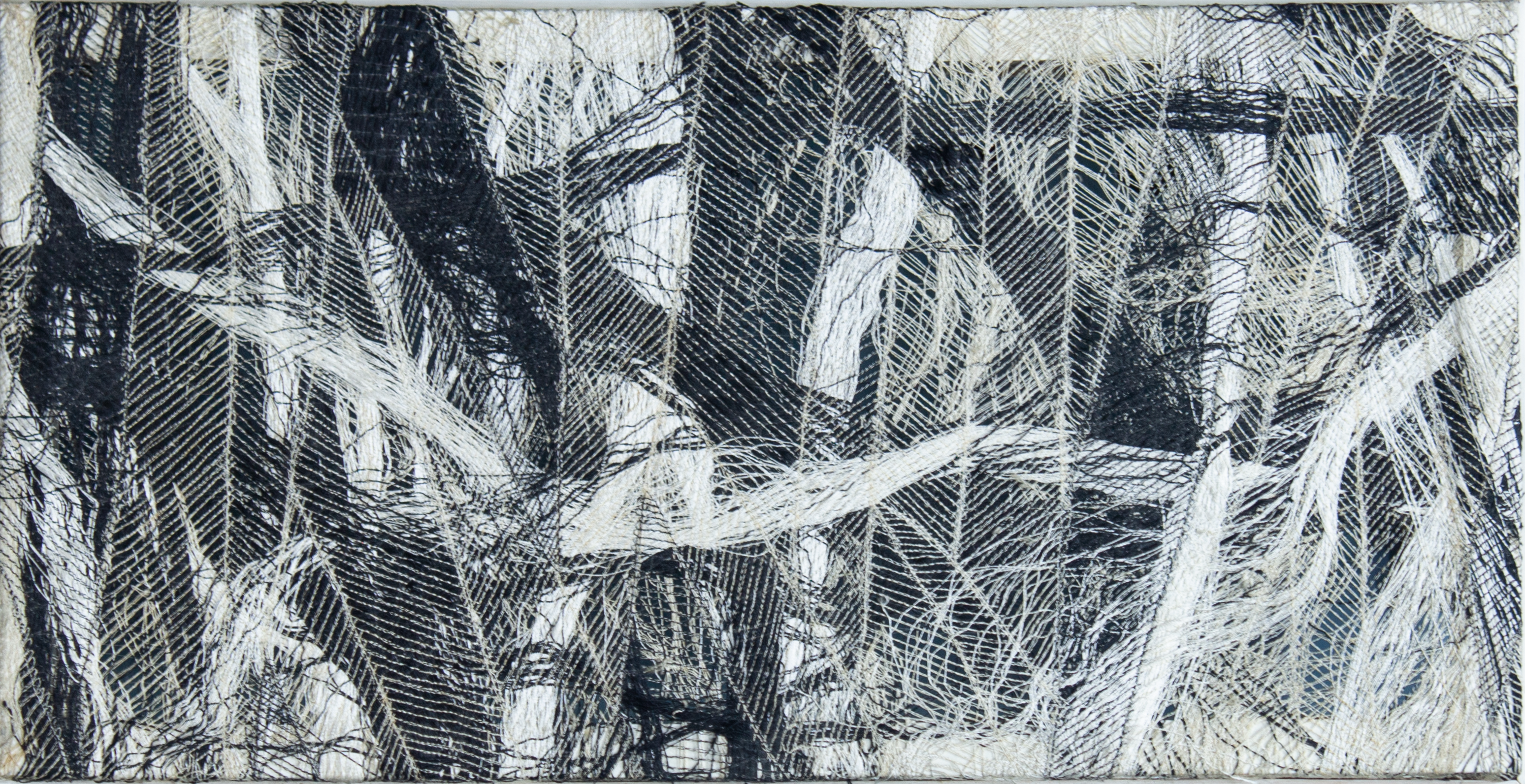 This abstract artwork features a complex interplay of black and white textures, evoking a sense of movement and depth. The intricate layering of lines and patterns creates an illusion of woven threads, suggesting themes of connection and contrast. Ideal for modern spaces, this piece adds a touch of sophistication and invites viewers to explore its enigmatic design.