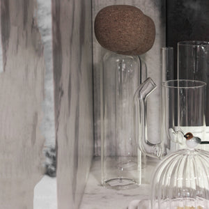 KOKESHI Big Bottle provides pure glass and a minimalist design with a cork stopper, invoking a Kokeshi doll head. As an ideal vessel for beverages as much as for showcasing contemporary elegance in your kitchen or dining room, this bottle bears an elegance that functions as an accessory in your drinkware collection.