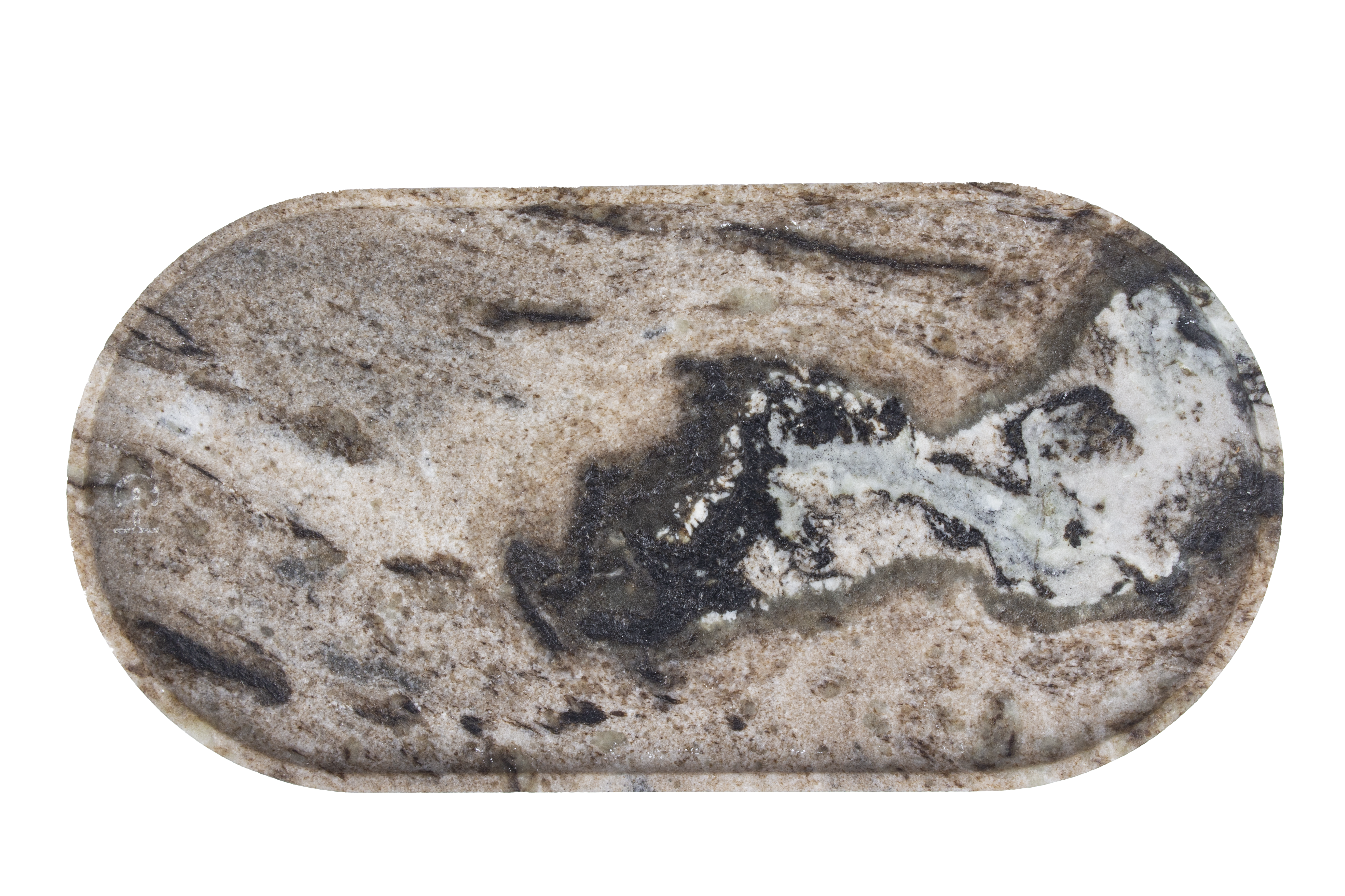 Handmade Lava Oro Stone Oval Tray is an enchanting compromise strikingly merging the organic richness of woodlands and elegant artistry reminiscent of nature's untamed beauty. The prodigiously dramatic black veining mingles with earthy browns and soft beiges, evocative of molten stone forms, infusing character-depth and texture into your interiors.