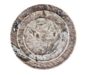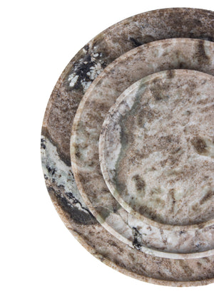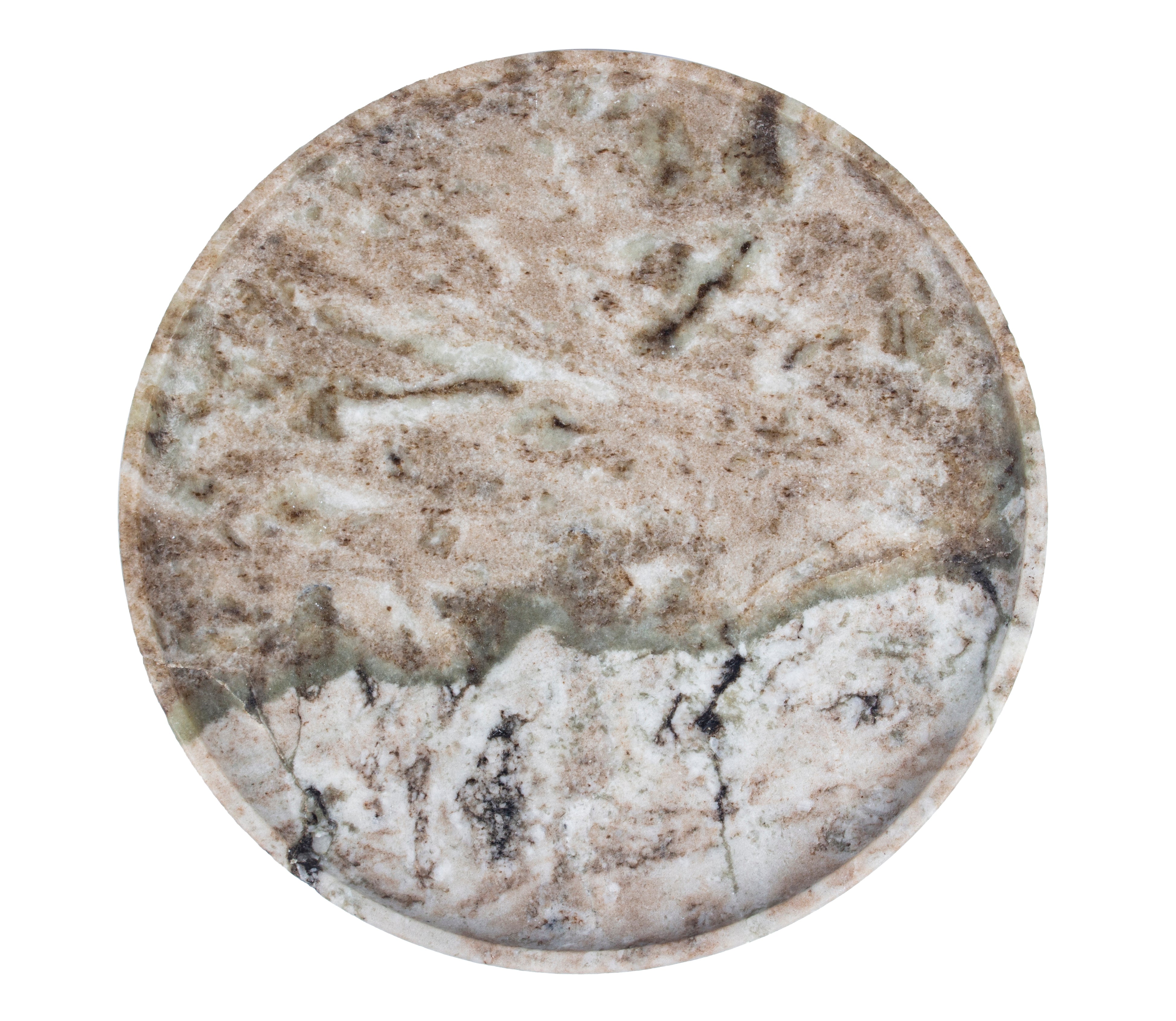 The overall roundness softens the bold character of the stone and adds balance and fluidity to the design. Whether used for serving, styling, or simply as a sculptural object, the tray adds grounding sculpture-like elegance and organic sophistication. The honed finish enhances the visual impact of veining and feels wonderful in the hand-whether in a minimalist interior or one with rustic simplicity.