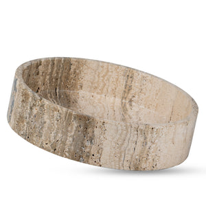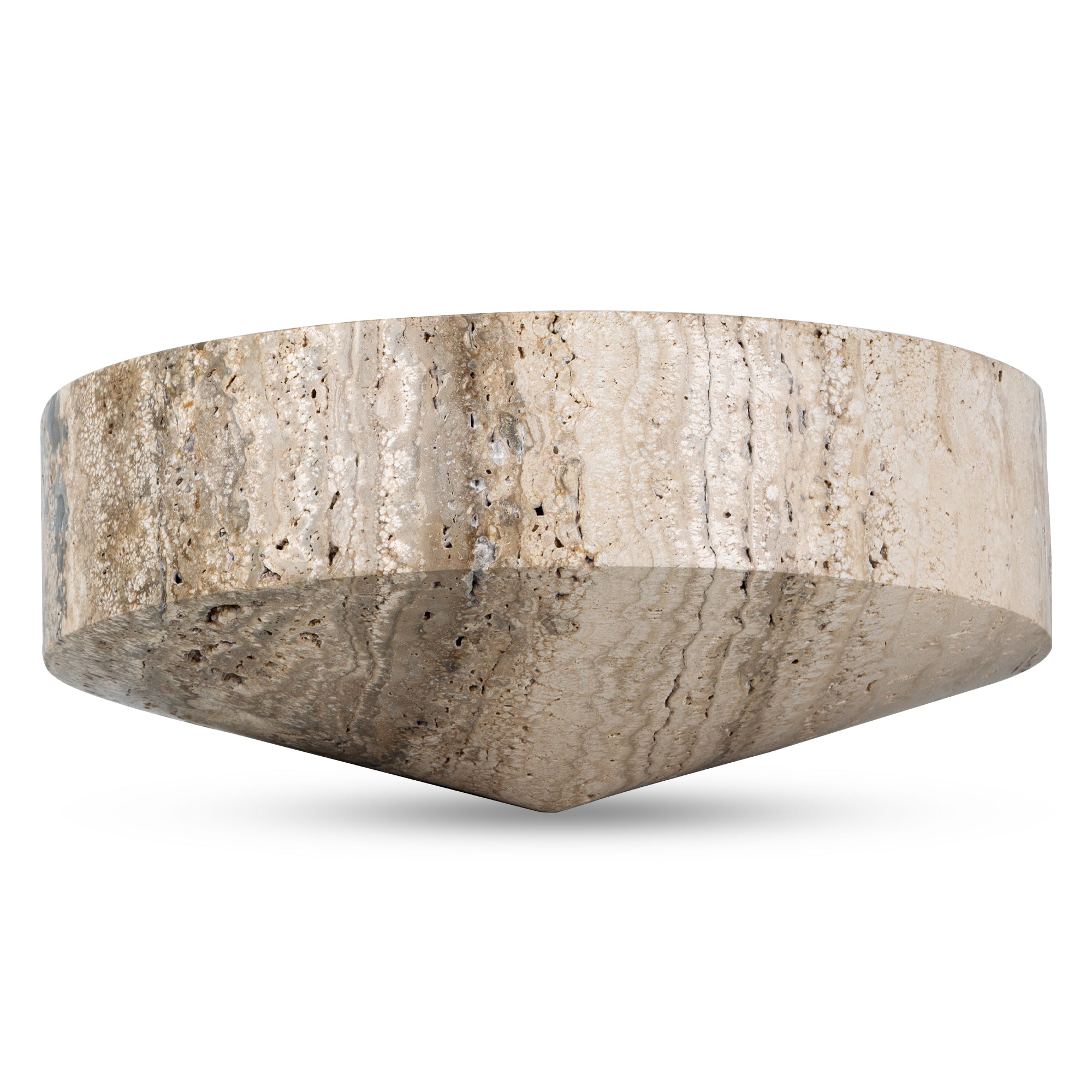 The forceful geometry of the oblique profile is the counterpoint of a smooth-polished surface of stone. Thus an ideal equilibrium is achieved between modern design and an eternal beauty. It is perfect as a functional bowl which is to be used mainly for dry products or as a stand-alone decoration accent to be styled, you name it as a conversation piece being able to add an illusion of depth and dimension to consoles, tabletops, or open shelves.