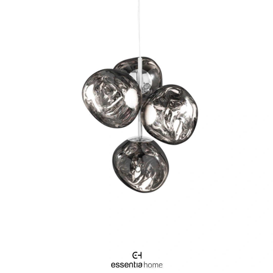 Perfectly sized for more intimate settings, the Melt Chandelier Mini adds a striking touch to dining tables, stairwells, lounges, or boutique hospitality venues. Its sleek silver finish creates a mesmerizing dance of light and distortion, making it a standout centerpiece in contemporary interiors.