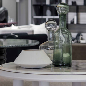 The pourer betrays its fragility with its delicate glass; its gentle curves are aesthetically pleasing yet easy on the hand. You could place it on a contemporary dining table or style it in a kitchen vignette to bring about some poetic minimalism. Whether poured with water, wine, or infused blends, it engages with both form and function.