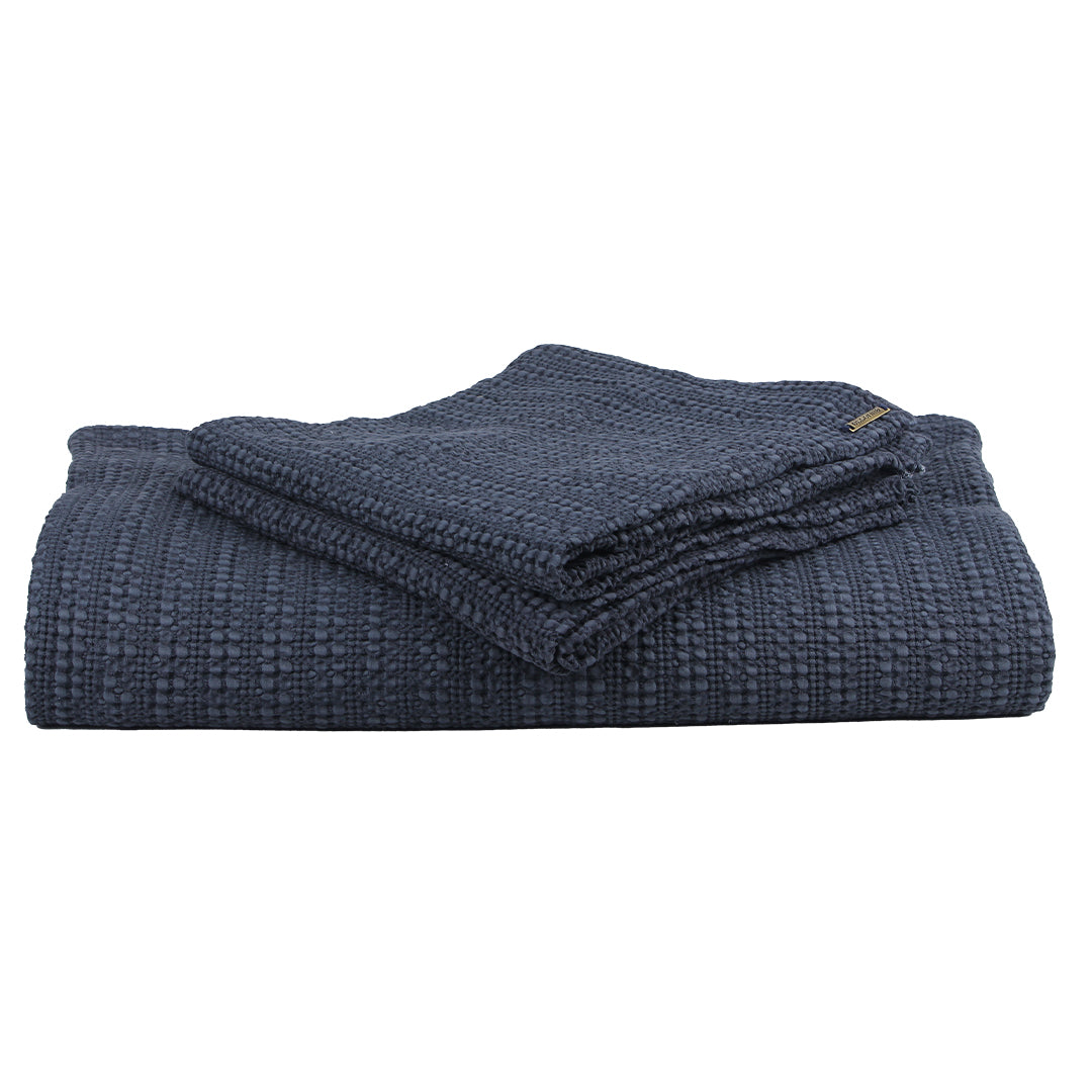 Navy Blue Waffle Bed Spread And 2 Euro Sham