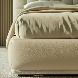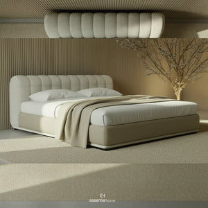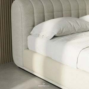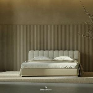 With smooth lines and well-considered proportions, the bed brings a sense of calm and order to the space. The overlapping details introduce a gentle architectural rhythm, adding interest without overwhelming the overall design. This understated approach allows the bed to feel both contemporary and timeless.