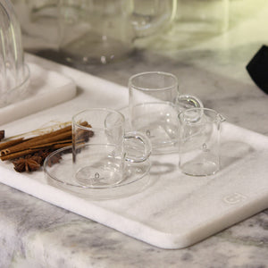 The PIUMA Coffee Cup Set presents a minimalist clear glass design contemporary for your most apparent signatures: a handle that allows you to cup your morning coffee easily. This coffee cup's contour has an understated yet perfect sylph for holding beverage service.