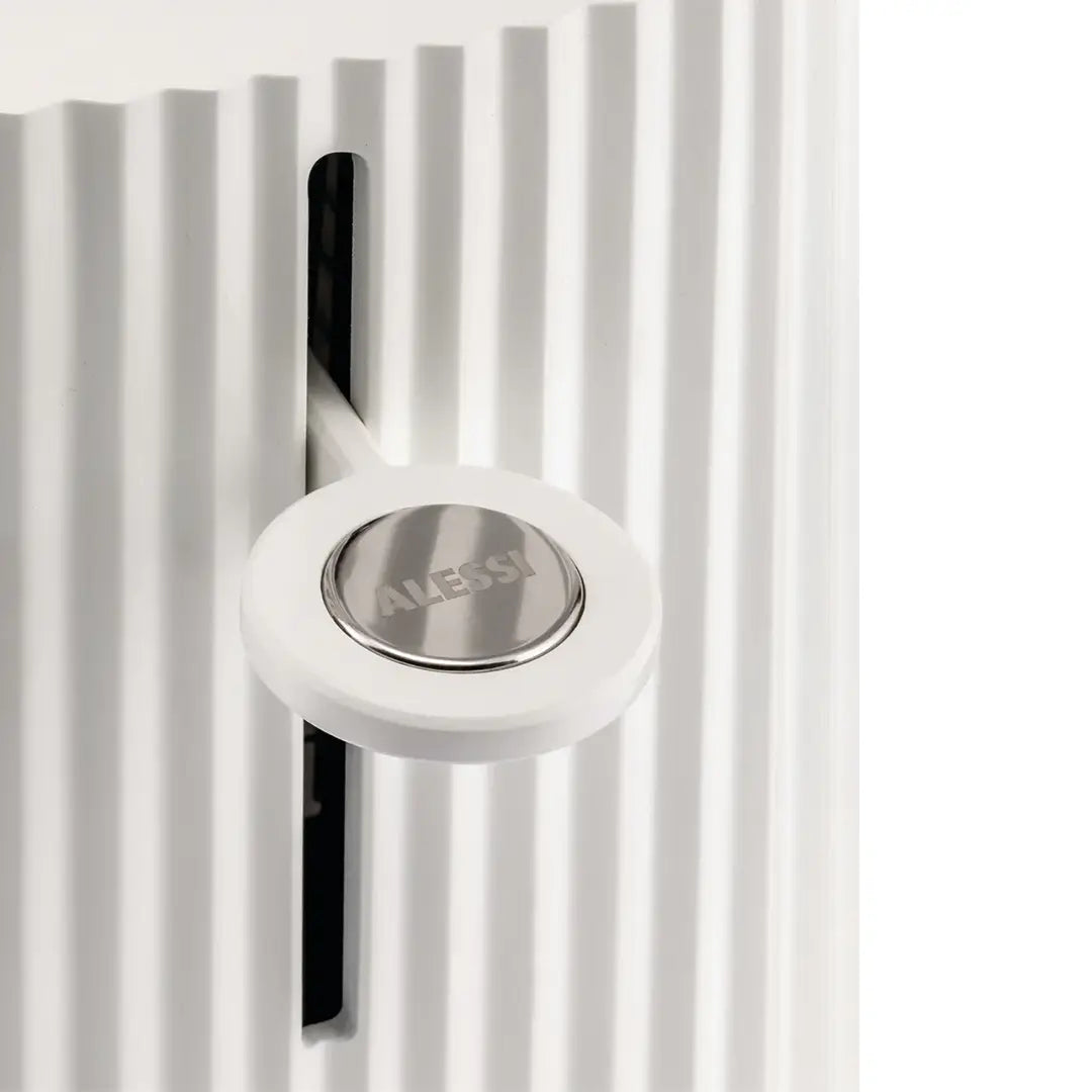 Where fashion meets function, the Plissé toaster in white transforms a kitchen staple into an object of art. Designed by Michele De Lucchi for Alessi, its crisp pleated surface evokes the folds of couture fabric, giving this everyday appliance a light, architectural presence.