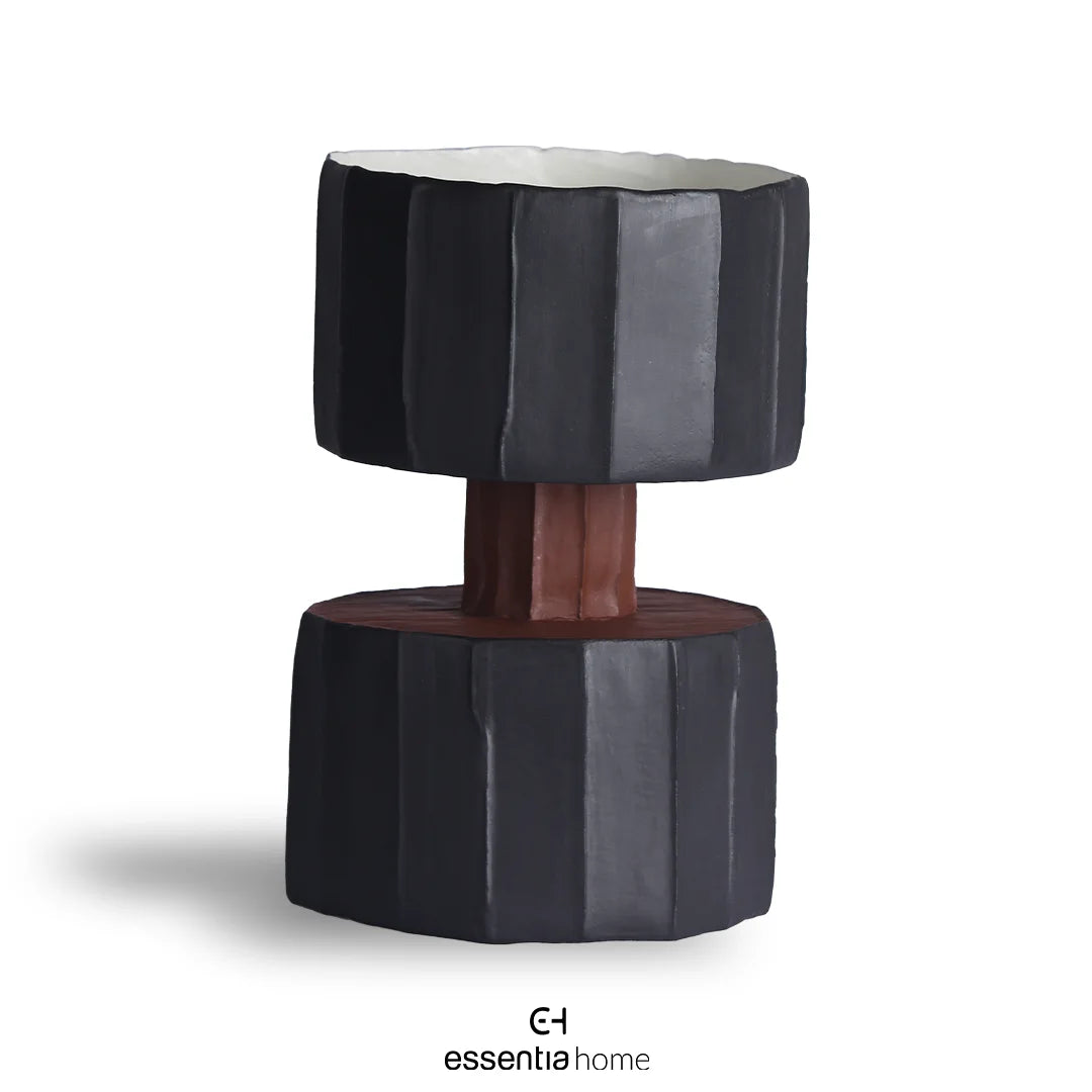 Finish and Material: Handcrafted sculptural piece with a smooth bicolour matte finish, vertical form, and refined proportions