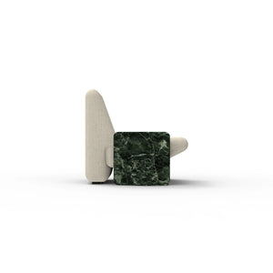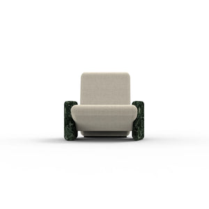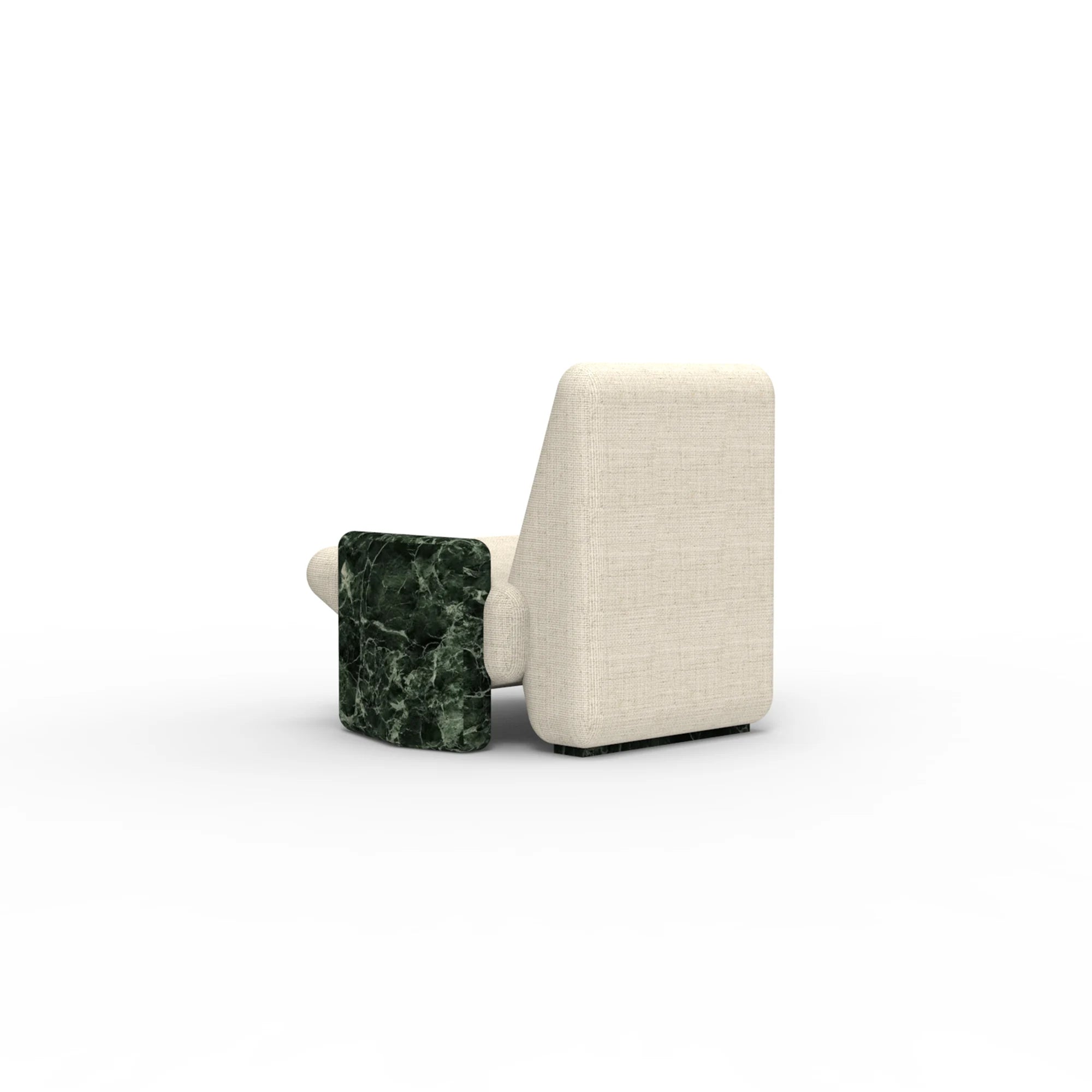 One of the defining features of the Sculpted Armchair is its sculptural armrests, crafted in Xabia Marble with a leather finish, adding an element of visual contrast and structural stability. The natural veining of the stone enhances the chair’s character, bringing a unique and organic touch to its contemporary silhouette. The base incorporates a 6mm metal sheet with a 6mm buffer, ensuring strength and stability.