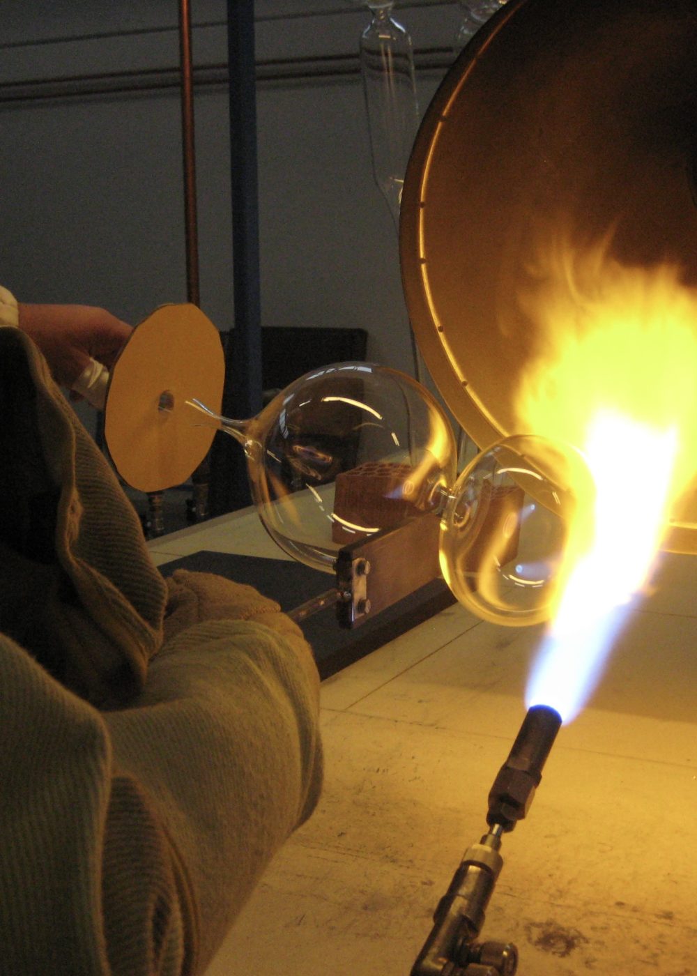 Materials: Frosted Hand-Blown Glass, Tubular Metal Mesh