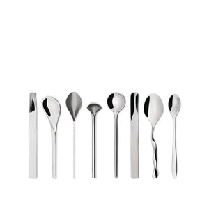 Crafted by Alessi and designed by AA.VV., the MSPOONSET is a refined set of 8 uniquely designed coffee spoons made from 18/10 mirror-polished stainless steel. Each spoon in the set features a distinct silhouette, turning a simple coffee ritual into a curated experience of contemporary design. Ideal for serving espresso, tea, or tasting menus, this collection blends artistic form with everyday utility.