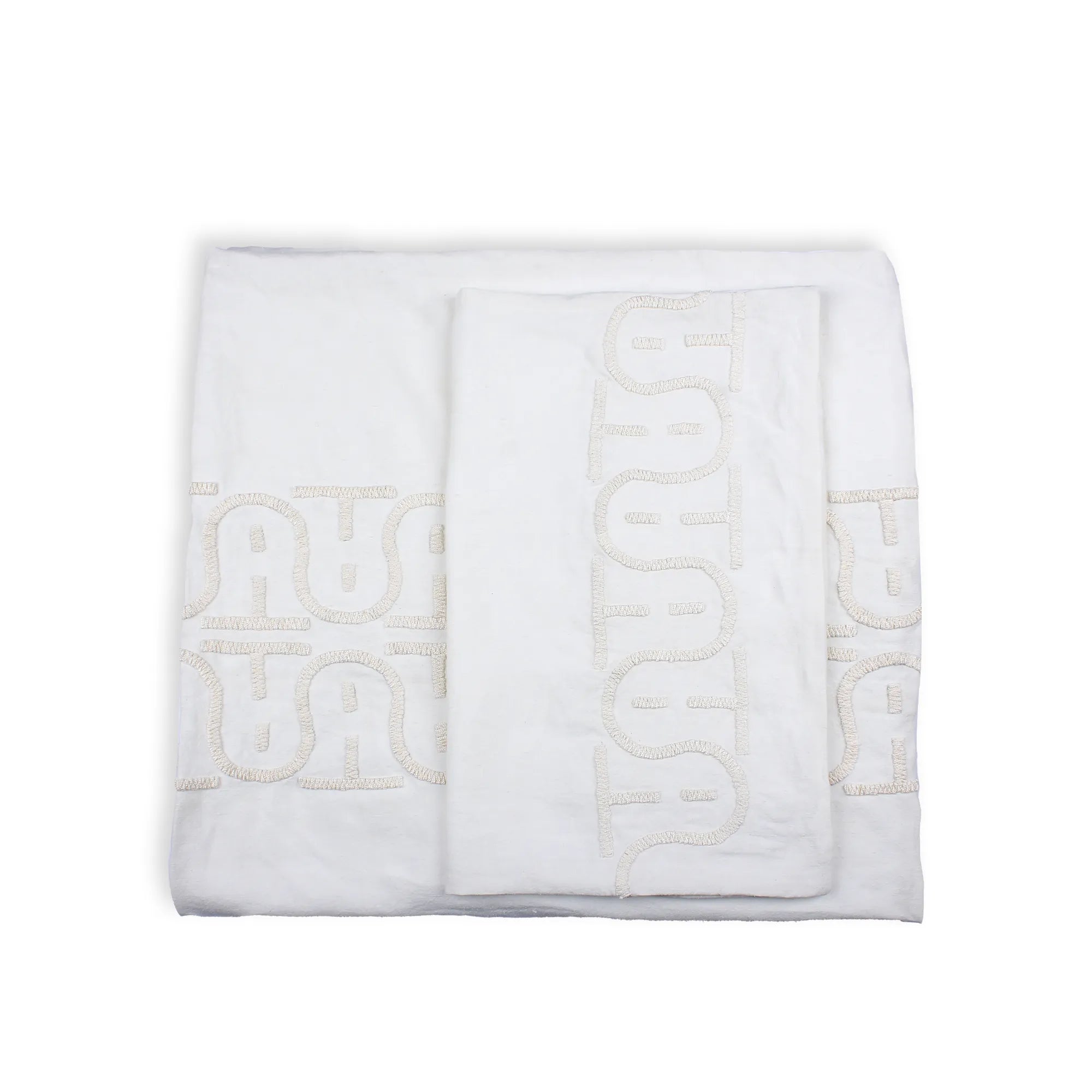 A tribute to design identity and minimal luxury, the Signature EH Duvet Cover and Sham Set by Essentia Home blends softness, sophistication, and statement. Crafted from premium natural cotton, this bedding set celebrates handcrafted homeware, luxury interior design India, and the essence of bespoke home accessories. The iconic EH motif—subtly embroidered in beige against a clean off-white base—adds a layer of brand-led design that whispers exclusivity.